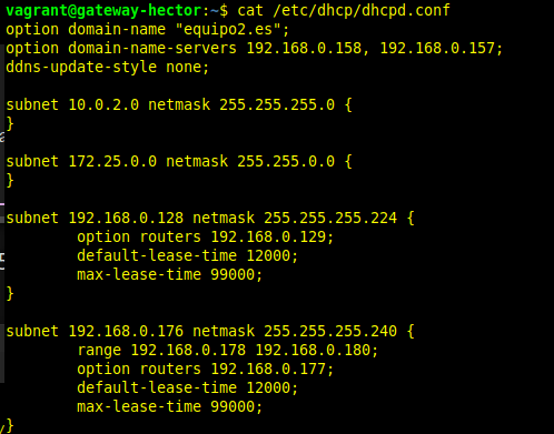 Ara hem d’afegir com ja sabem al fitxer /etc/dhcp/dhcpd.conf la xarxa.
