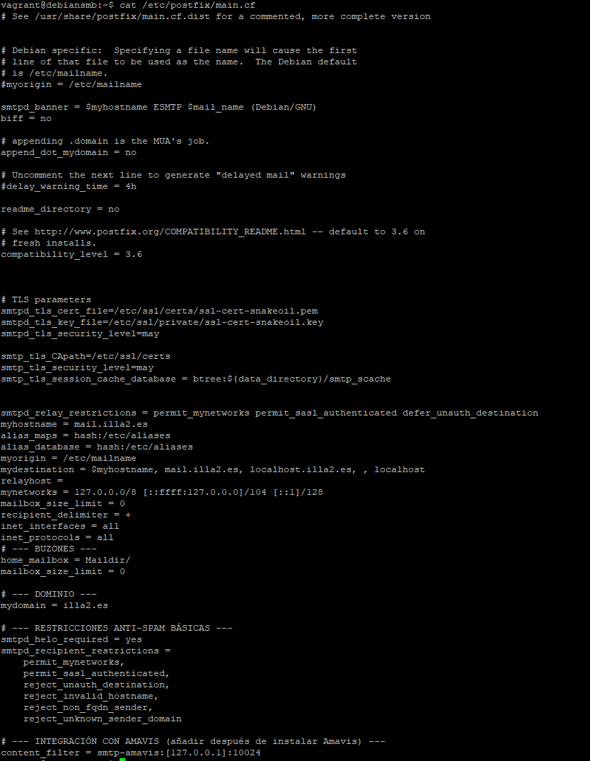 > **Nota:** La línia `content_filter` s'activa un cop Amavis és instal·lat i configurat.