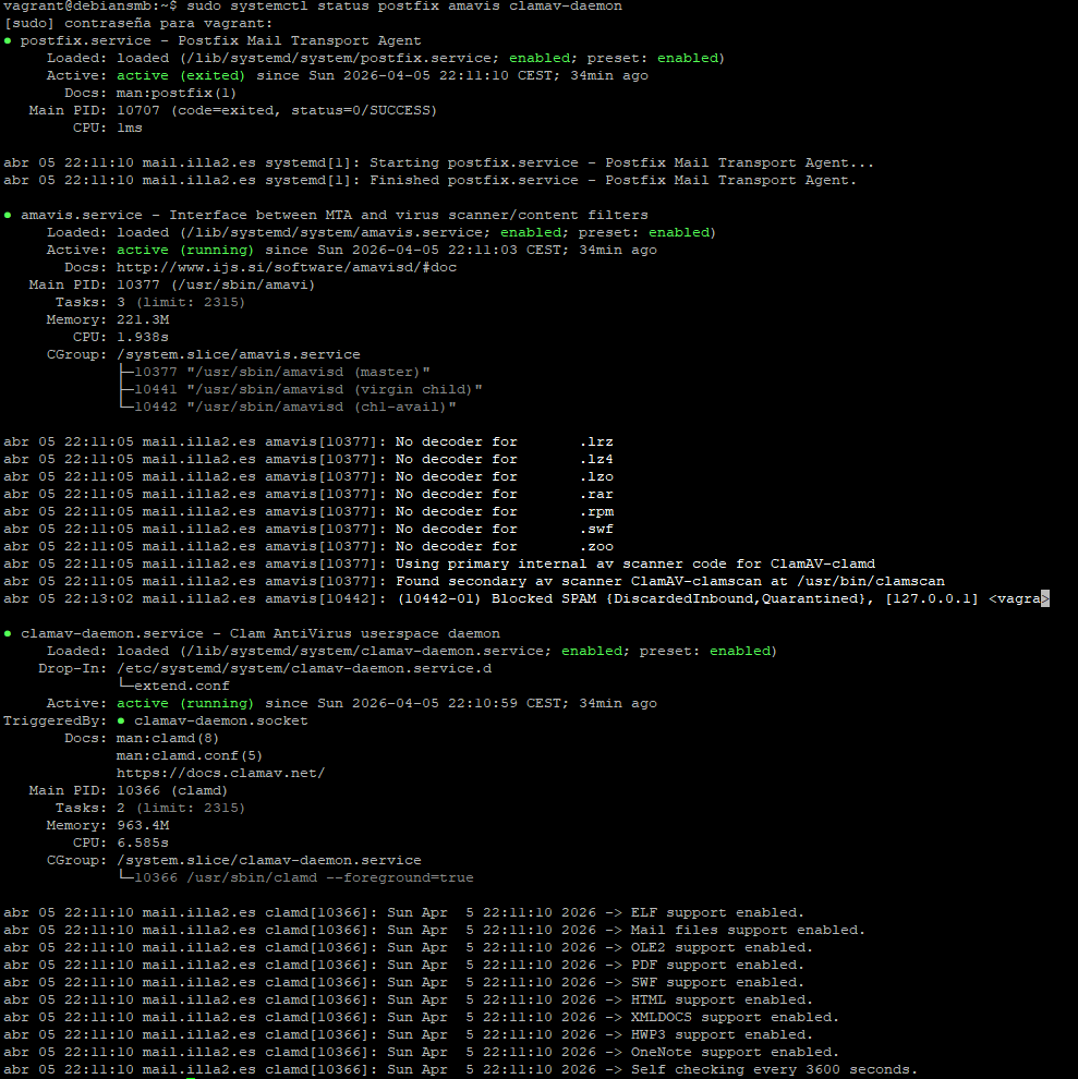 | **Amavis** | Intermediari entre Postfix i els filtres |