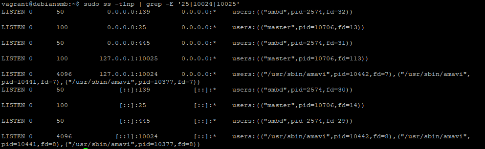 sudo ss -tlnp | grep -E '25|10024|10025'
