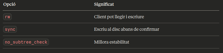 Els serveis RPC (Remote Procedure Call) — concretament rpcbind i nfs-mountd — s’encarreguen de la comunicació entre client i servidor per la xarxa: el client demana muntar, el servidor valida i assigna ports dinàmics.