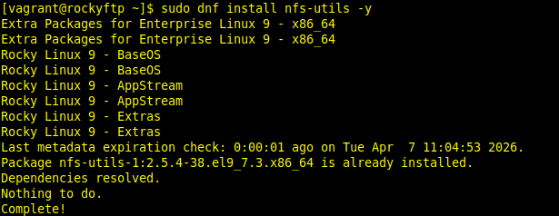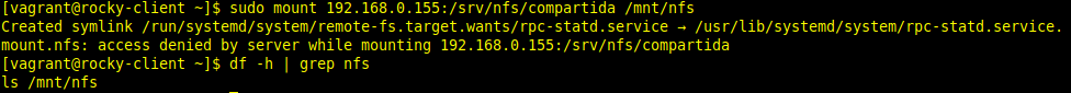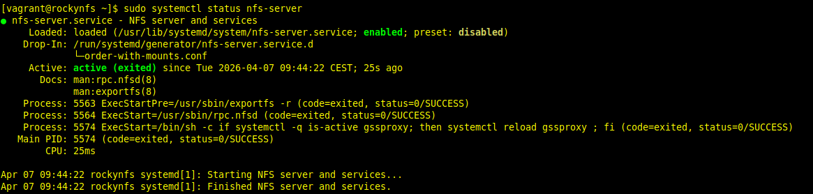 [vagrant@rockynfs ~]$ sudo systemctl restart nfs-server