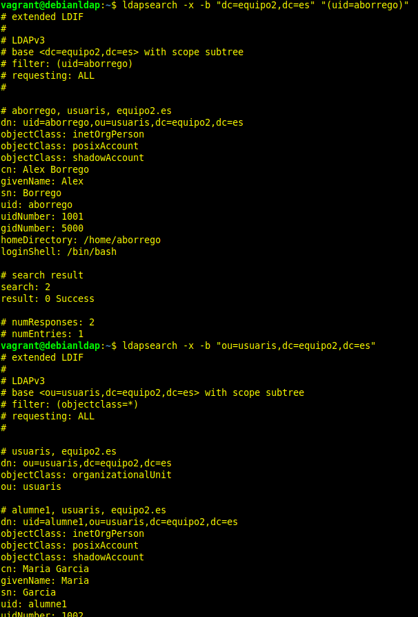 vagrant@debian:~$ ldapsearch -x -D "cn=admin,dc=equipo2,dc=es" -W \