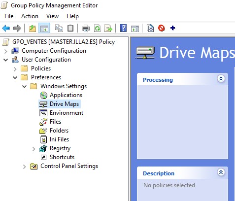 Obrim GPO i la ruta es aquesta: User Configuration -> Preferences -> Windows Settigns -> Drive Maps